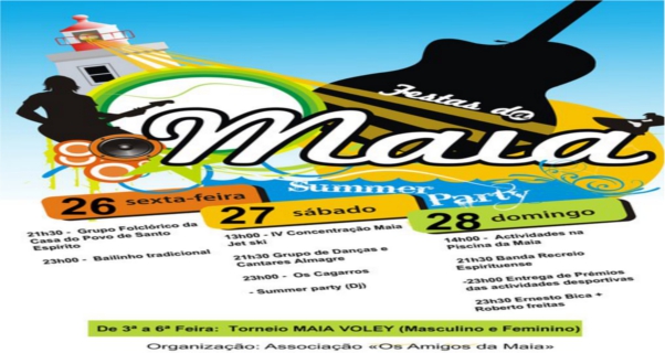 admin A Associação “Os Amigos da Maia“, realizam a de 26 a 28 de Agosto, as Festas da Maia, summer party com o programa que pode ler no cartaz abaixo. De terça 23 a Sexta 26 decorre o torneio de Voleibol “Maia Volei”, em Masculinos e Femininos.